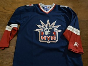 Rangers Liberty Jersey , Ccm Air Knit Mens Large New York Rangers Lady Liberty Alternate Sewn Blue Jersey | Ebay